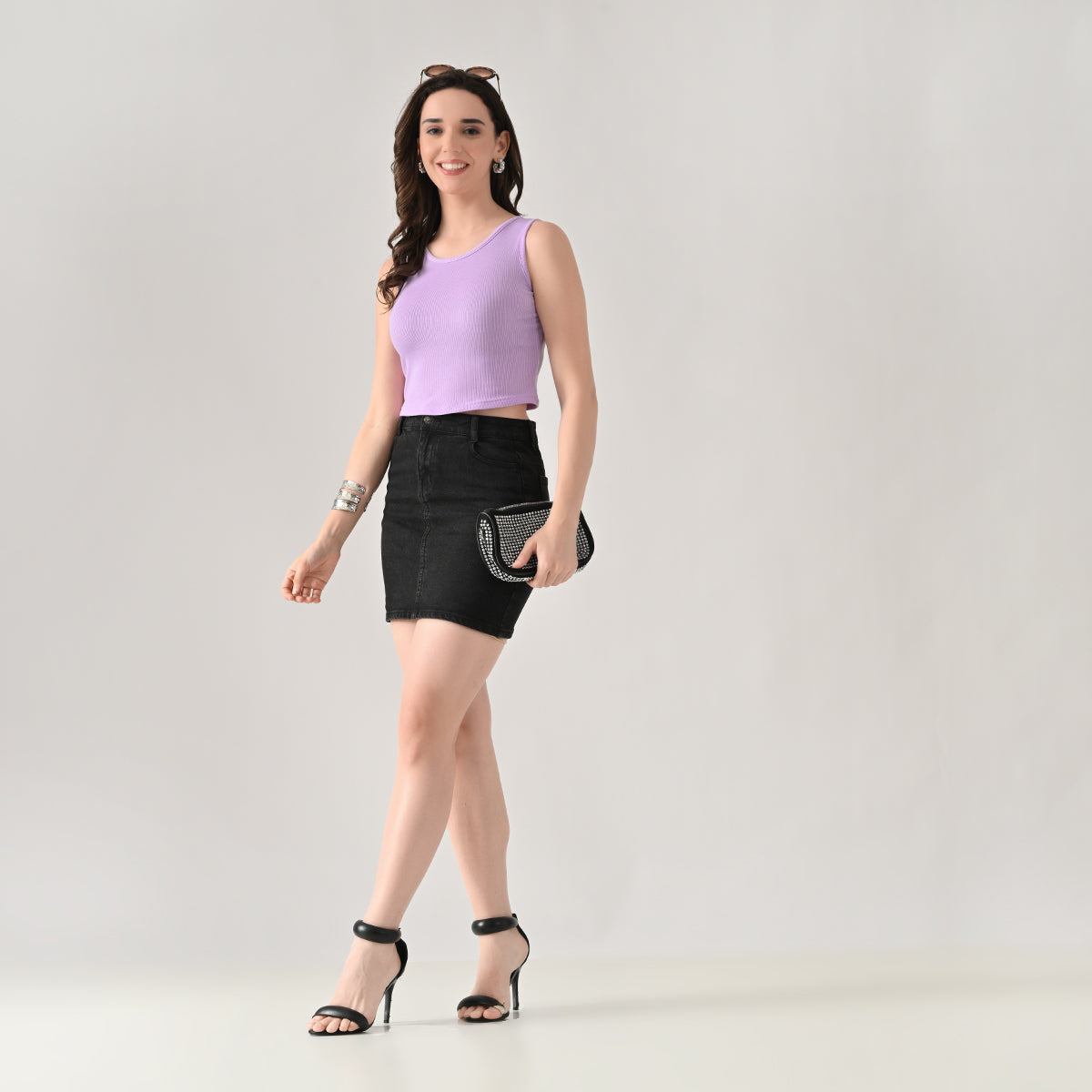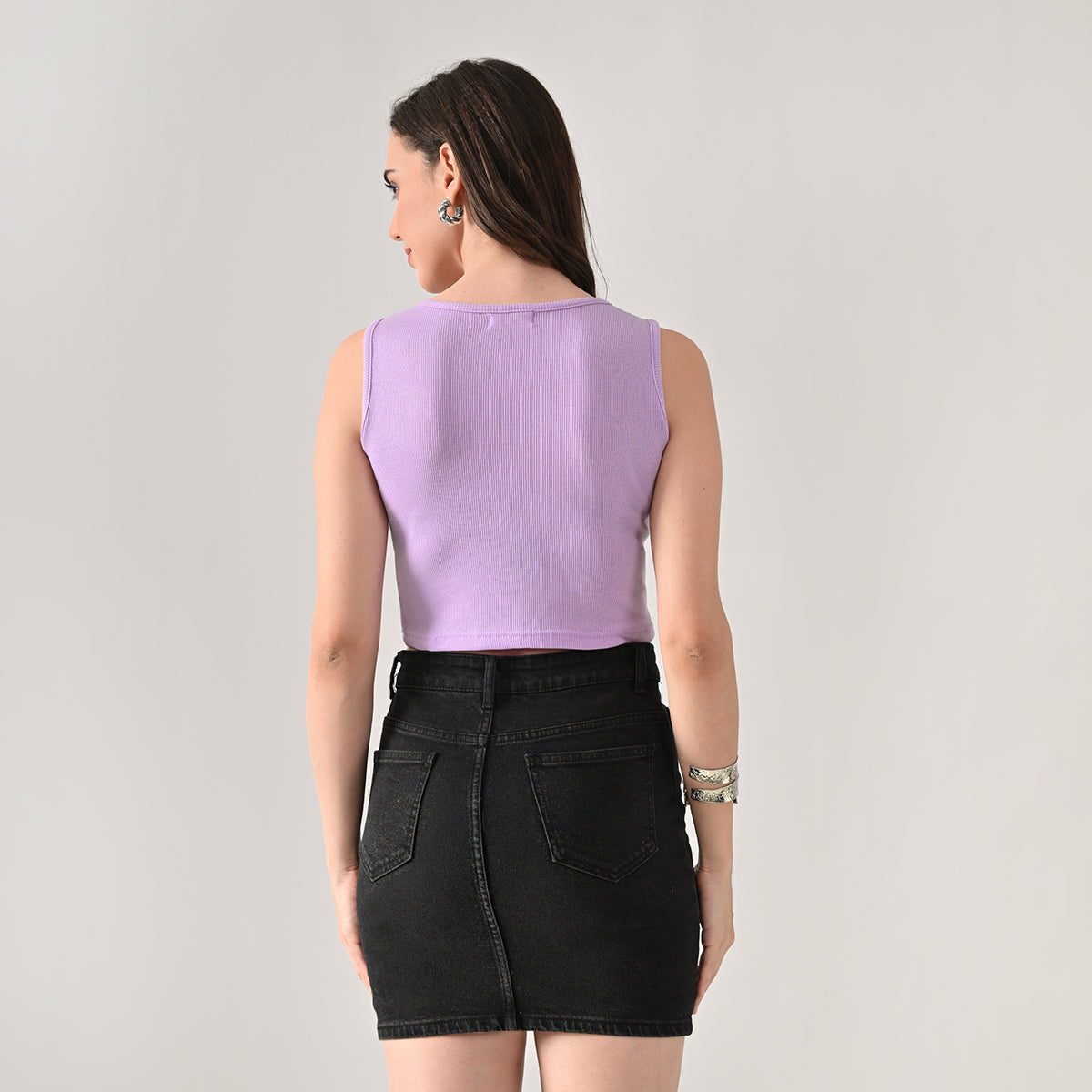 Stay stylish with the Vienna Sandow top in elegant lavender. Made from soft ribbed fabric for a comfy feel and flattering fit. Free size fits most (Model height: 5’8”). Ideal for casual looks. Made in India. Easy machine wash care. | Category: Top | Fabric: Ribbed | Fit: Free Size.